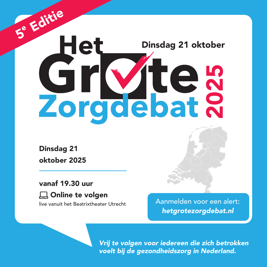Deze zes partijen staan dinsdag 21 oktober op het podium tijdens Het Grote Zorgdebat. Wil jij het debat bijwonen of gratis online volgen? Meld je aan